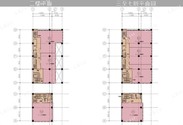 格局規劃 永寧捷運站附近唯一全新完工盛元承天廠辦大樓 盛元承天 建築格局規劃 盛元承天綠意廠辦是全區大隱於萬綠樹海中的亮麗雙星建築,全棟RC結構精鑄,外牆採用鵝黃色鋁板幕牆拼貼,兼具美觀、耐久、抗腐蝕且易於清洗保養。 外觀設計採用對比式幾何美學,讓兩座建築呈現出高低錯位的非對稱型態,利用量體退縮製造出寬敞的出入動線。 A棟採單層單戶規劃,共七個樓層,每戶大面的落地窗,讓周邊綠意隨著陽光引入室內,呈現出12小時的縮時美景。 B棟則為五層樓每層2-3戶的設計, 同樣擁有大面窗、大採光,格局方正且動線流暢,是最適合各類輕工文創或科技產業之廠辦格局。 建築格局規劃圖